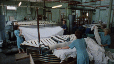 Women workers give voice to their puzzlement, anger and despair as years of hard work cleaning laundry for hospitals is discarded.