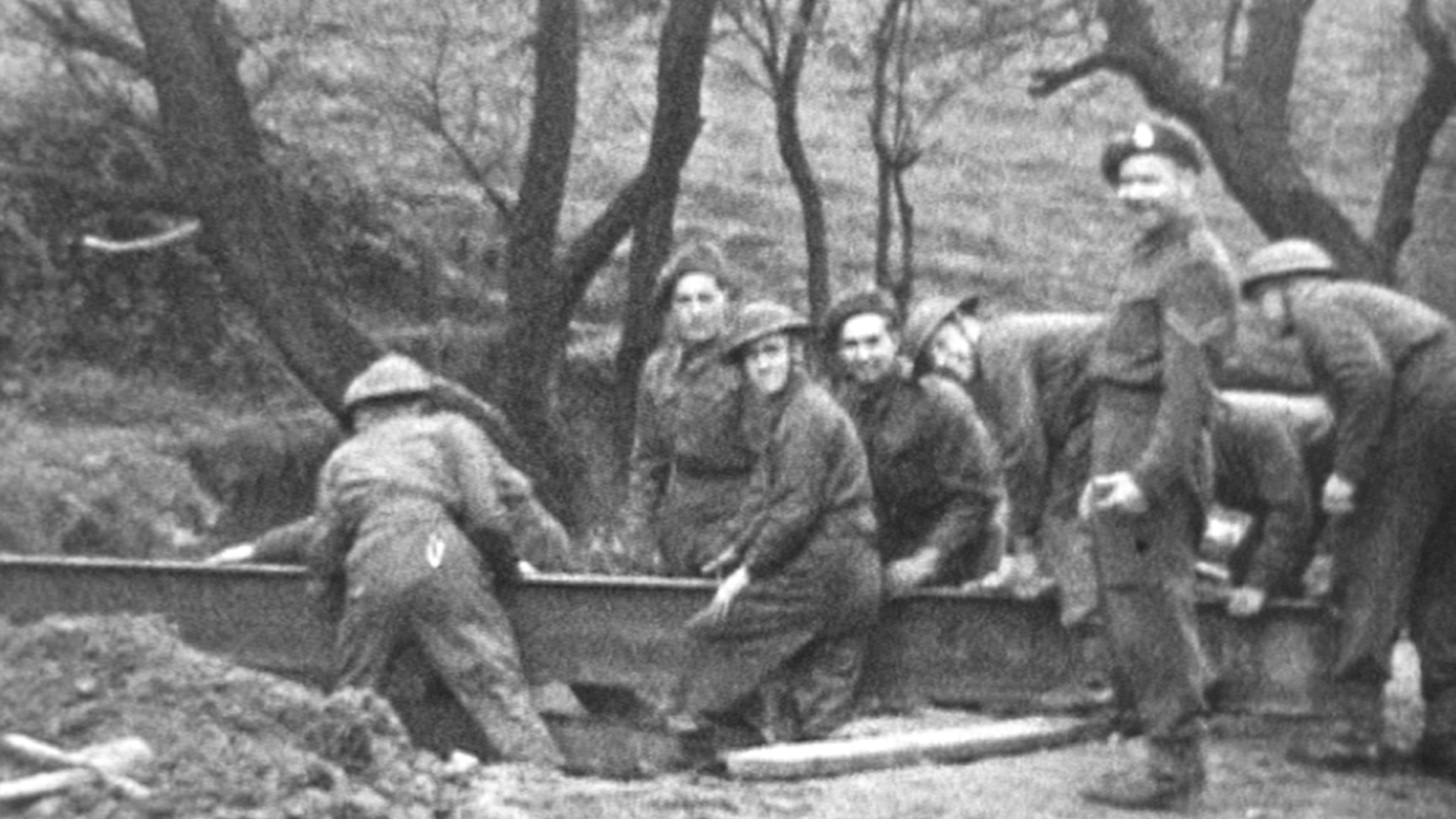 Teamwork and camaraderie is not in short supply in this 1944 Royal Engineer training film. First, there’s time for the men to have a laugh and joke before hard work ensues as they construct a number of temporary bridges. They lift and position seemingly impossibly heavy bridges with great ease which the camera marvels over and exploits to great effect.