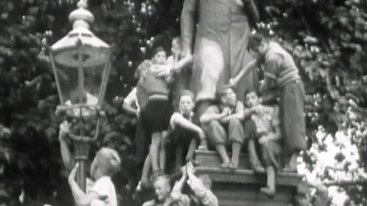 Bustling street scenes in the build-up to the 1936 Berlin Olympics and atmospheric shots of the opening ceremony.