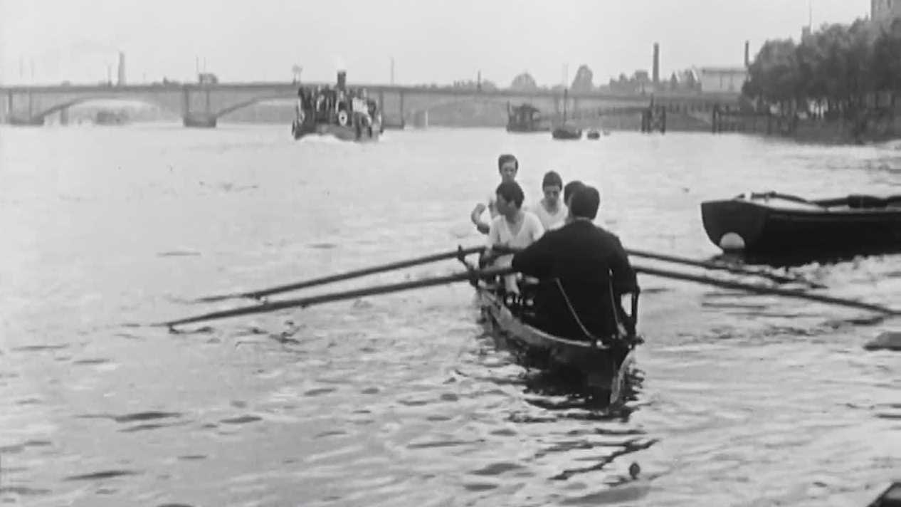 This short newsreel shows tantalizing glimpses of three rowing races between blind soldiers and their student rivals. The crew is comprised of either two or four rowers. Each team also includes a cox, who helps steer the boat. Lookout for the steamboats with crowds of passengers watching from the deck.