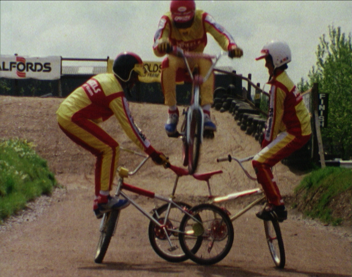 Three years after the new sport of 'Bicycle Motor-Cross' racing arrives in Britain at nearby Redditch, reporter Peter Emina drops by the Adderley Park track in Birmingham to meet riders from the Birmingham Wheels team, who are pushing the boundaries of risk taking in this exciting sport.