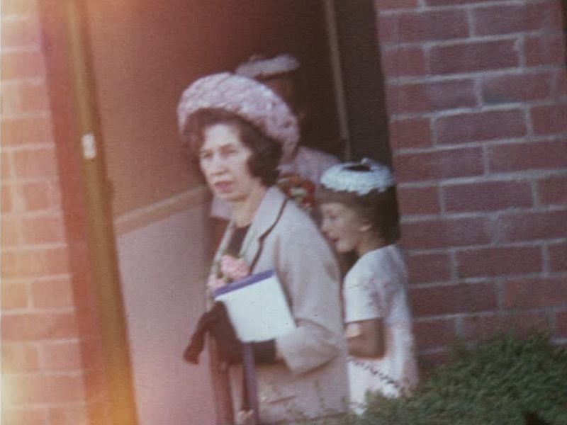 Flower girls, kisses and 60s fashions as a couple go up the aisle in this home move of a family wedding in the 1960s.