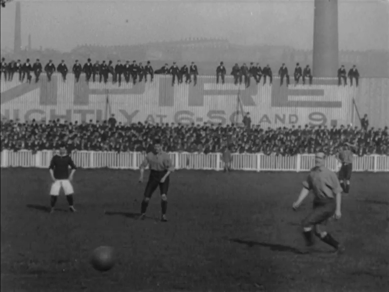 Bradford's Valley Parade ground has a troubled past, but it looks remarkably atmospheric here with a crowd of 11,000 enjoying the team's first league home fixture, though Gainsborough spoiled the party by winning 1-3. One of Mitchell & Kenyon's best football films, this gives us 21st century spectators a better view than those precariously balanced on top of the massive Empire Theatre billboard.