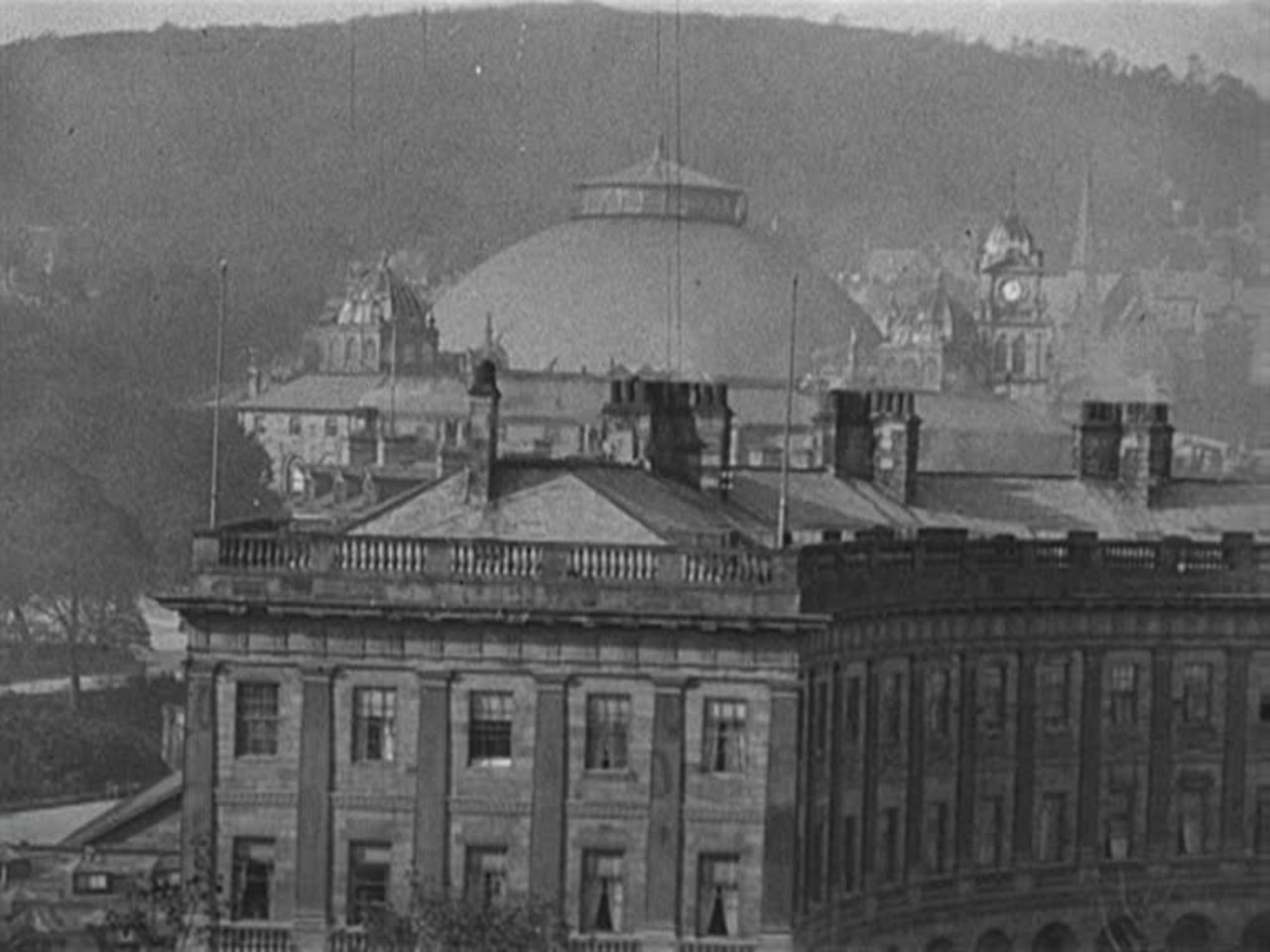 The imposing sight of Buxton's Georgian Crescent and the 18th century Devonshire Dome behind it is as familiar to locals today as it would have been to this film's Edwardian audience. Commissioned from travelling filmmakers Mitchell and Kenyon by exhibitor Mr Tweedale, the film was shown in February 1901 in the Pavilion theatre, part of the then unfinished Buxton Opera House.