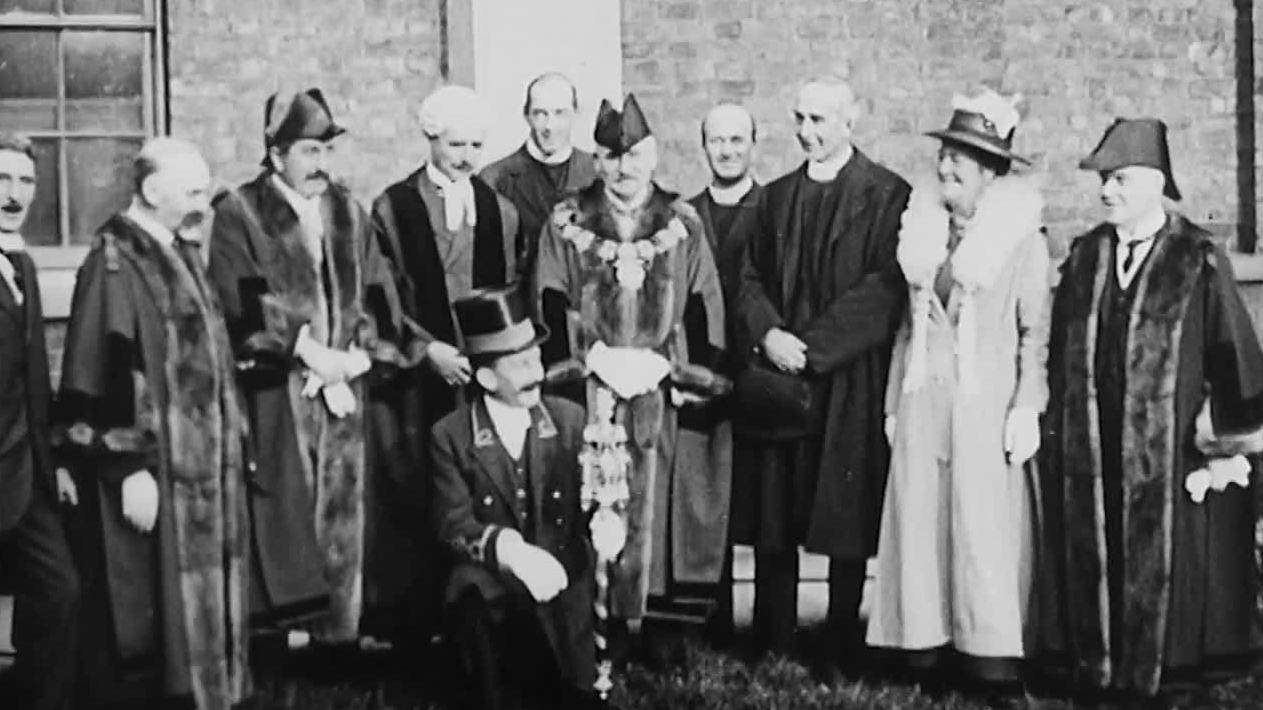 This film shows a procession of civil dignitaries and clergymen marching past a war memorial, followed by the Lord Bishop of Southwark. The Bishop is seen leaving the chapel behind the mace-bearer, accompanied by the Mayor and Mayoress of Camberwell. The Licensed Victuallers' Asylum was set up in 1827 for innkeepers and their families who had fallen on hard times.