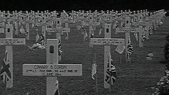 At Cambridge’s American Military Cemetery a sea of white crosses represent the American military personnel that served and lost their lives during World War II. Here, a service is held to honour the deceased.