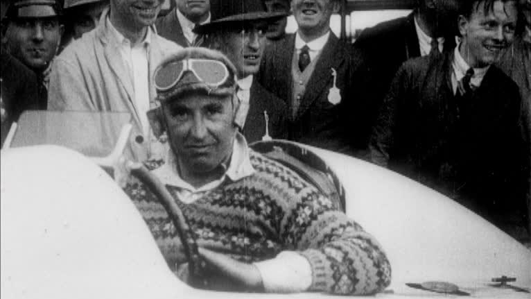 The land speed record was advanced nine times in the 1920s; seven times by the three Brits featured in this unusually comprehensive newsreel story. It focuses on Malcolm Campbell's 174mph record in the first Bluebird, which broke the previous high mark of JG Parry-Thomas in 'Babs', who's also featured. Waiting in the wings, and trailed in the film, was Henry Seagrave in Sunbeam, which would break the 200mph mark the following month.