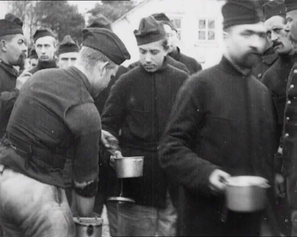 Poignant scenes of Allied troops enjoying their Yuletide rations at the first Christmas of WWI.
