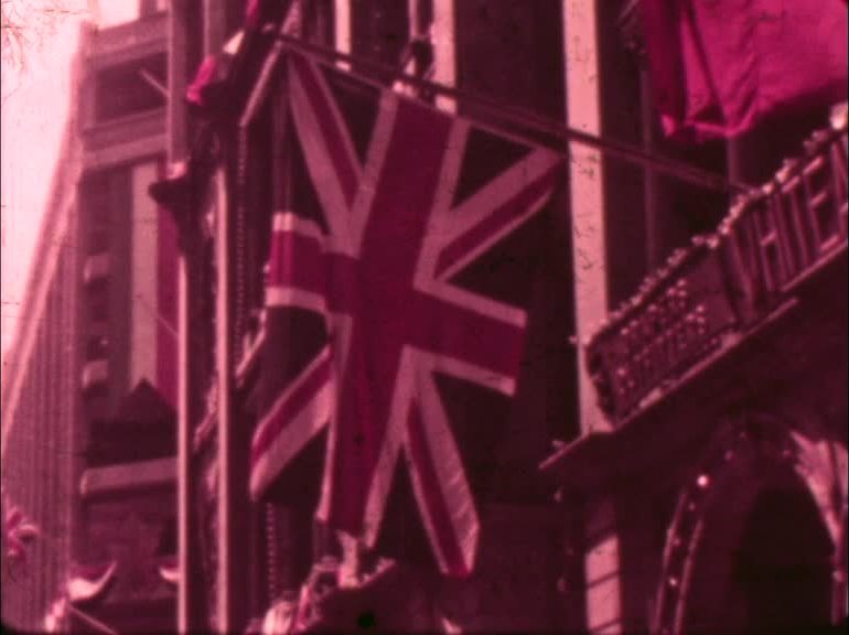 Sadly, the colour in the unique 8mm print of this film has badly deteriorated, leaving only an intense magenta. But this lends an eerily beautiful glow to the procession of gloriously decorated Chinese lanterns, drummers and lion and dragon dancers celebrating George VI's coronation - a lively contrast to the pomp and circumstance of the parallel events far away at Westminster Abbey.