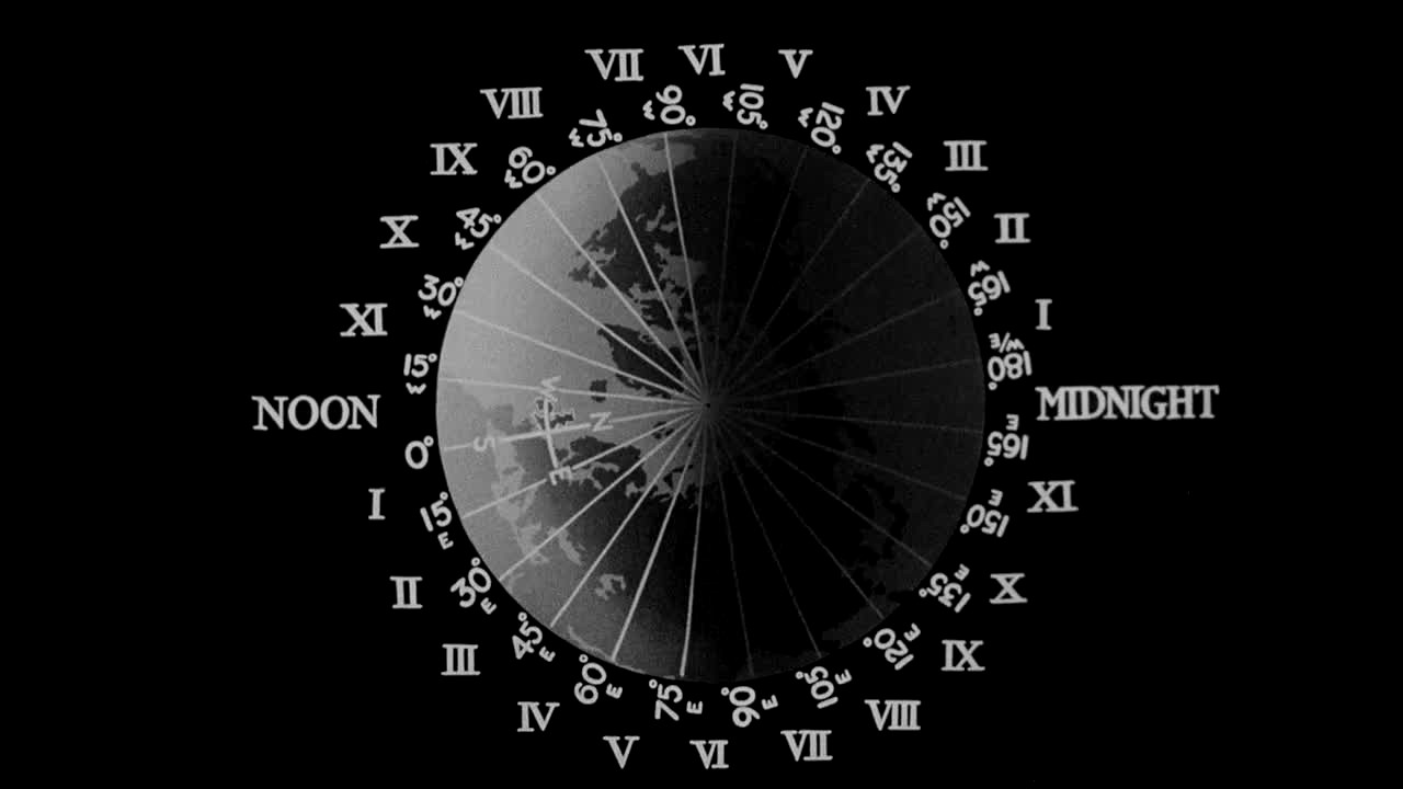 The opening credits read: - The Earth in Space No. 1. Day and Night. Longitude and Latitude. Produced by Science Film Ltd. Supervised by J.F.P Thornhill, B.A. The film also looks at the concepts of latitude - “the angular distance of a place north or south of the earth's equator, or of the equator of a celestial object, usually expressed in degrees and minutes” and longitude - “the distance of a place east or west of an imaginary line between the North Pole and the South Pole, measured in degrees”.