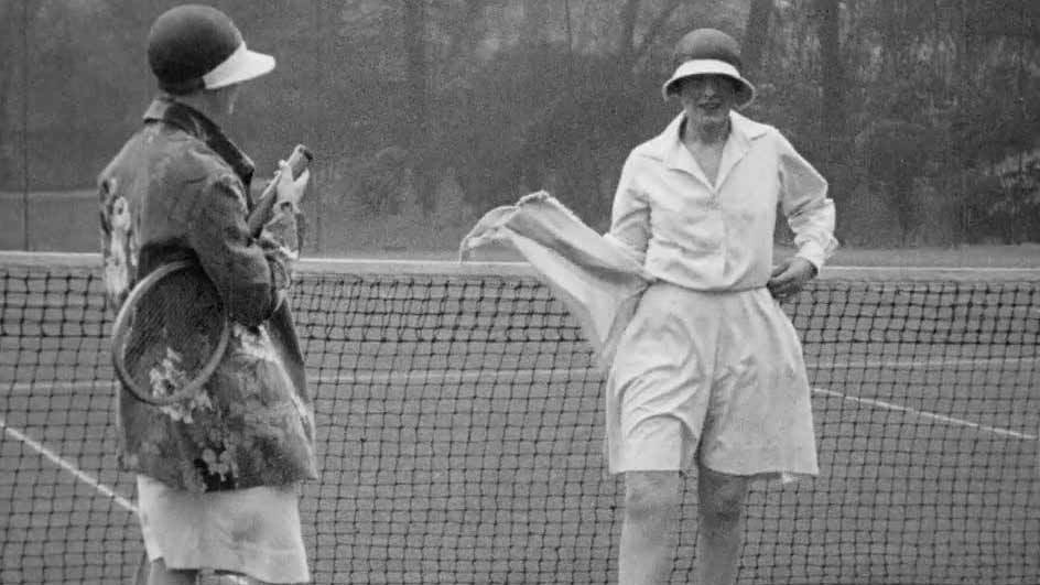Want to play tennis while maintaining a demure standard of clothing appropriate for 1926? Then the detachable dress by 'poetess designer' Sonia Bloor is for you. This Topical Budget newsreel item puts the new kit - really just baggy shorts with extra fabric attached - through its paces, with models showing off the full range of motion it allows.