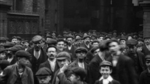 There is scarcely a woman to be seen in this film of employees and their engines at the agricultural machinery manufacturers Marshall's, whose Britannia works still stands on Beaumont Street, Gainsborough. Engineering required a literate workforce, as shown by the number of men buying newspapers or taking flyers from showmen to find out where and when the scenes being filmed would be screened.