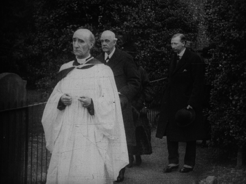 With the First World War still raging, Foreign Secretary Arthur Balfour, a former Prime Minister, leads a sombre throng at Hillingdon Parish Church, where he opens the doors for a shrine to the war dead in the churchyard.