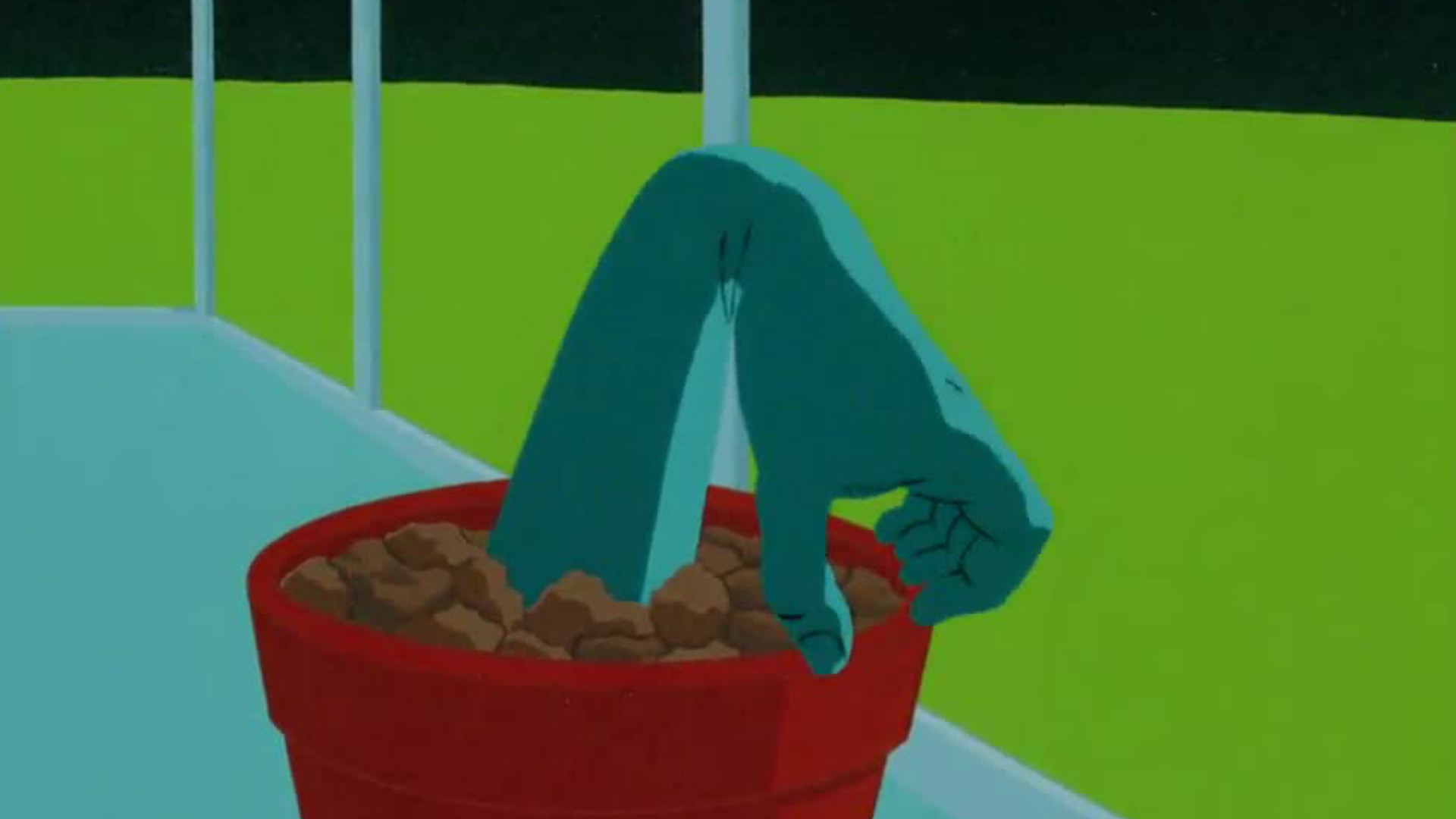 A storm is brewing. The oppressive, sticky heat of a greenhouse is tangible in this surreal, brooding animated short. Flat coloured graphics and twisting perspectives give the film an early computer aesthetic, although it was produced by entirely analogue means. Three years later, and in a completely different style, Daniel Greaves would go on to win an Oscar for his short Manipulation (1991).