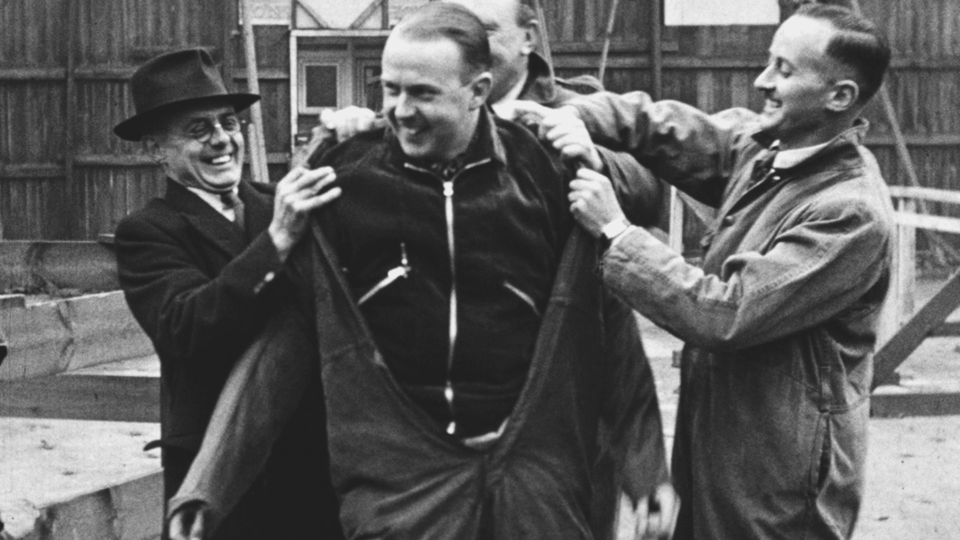 Fire Guards were volunteers recruited to operate in the vicinity of their own home and street and were formed into small teams of 3 to 5 persons and trained to tackle small fires caused by incendiary bombs or to extinguish the incendiary bomb itself using water supplied by a stirrup pump. Unlike an official goverment film, this amateur film lets us see the men joking about before getting on with the training - extinguishing smoke bombs and controlled fires.