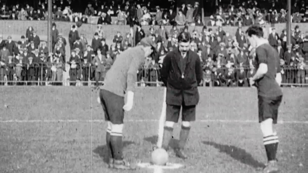 Bury's 3-1 defeat to Fulham at Craven Cottage was the result of the first ever meeting between these two long-established football clubs, captured in this Topical Budget newsreel. Fulham FC (probably in the dark shirts) had had a slow rise through the Southern leagues and were only promoted to Division Two in 1907. Bury, on the other hand, had been a regular in Division One and had only been relegated the previous season.