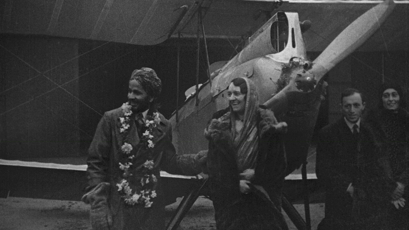 The Maharani of Cooch Behar, Indira Devi, is all smiles as she christens the Gypsy Moth aeroplane Miss India, watched by crowds at Stag Lane, London. The aircraft was due to be flown to India by pilot Mr Man Mohan Singh - presumably the gentleman wearing the flower garland here.