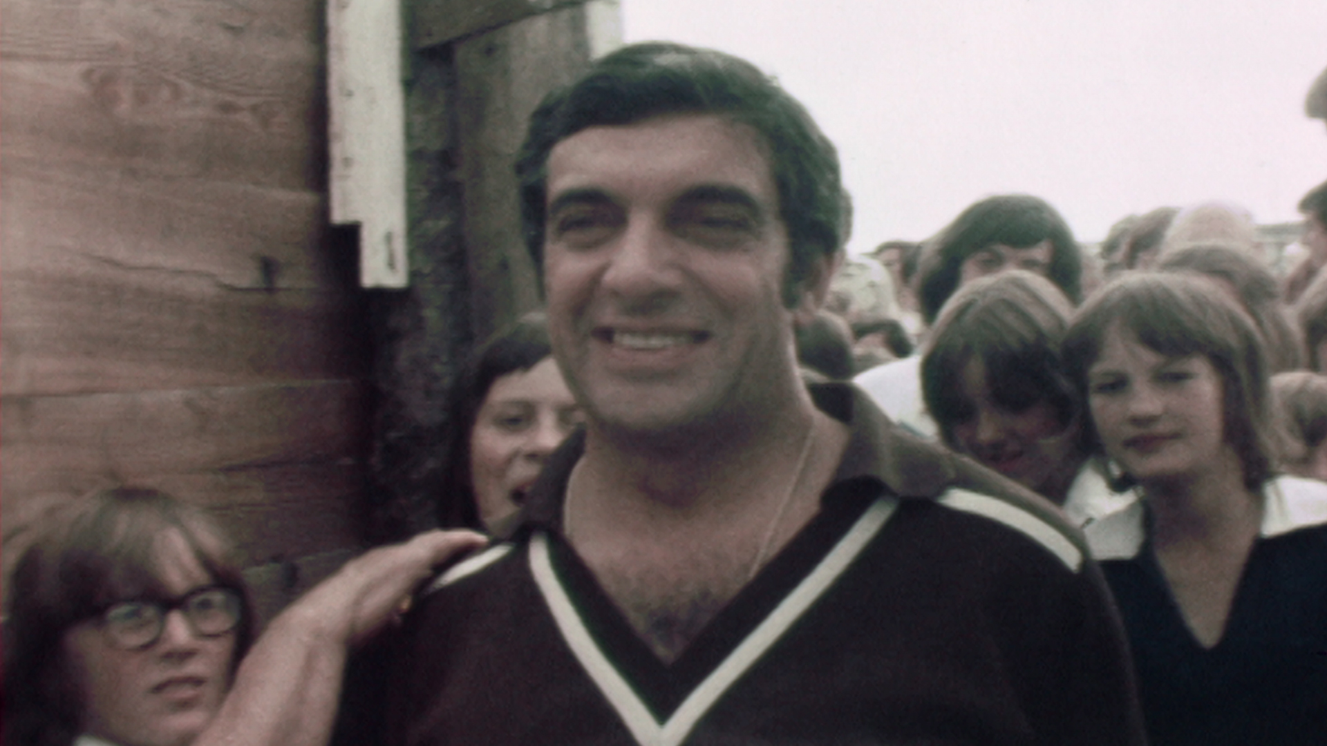 The famous singer and entertainer, Frankie Vaughan, surrounded by adoring fans, on a trip to the North Devon town of Bideford to open a new adventure playground at Pollyfield.