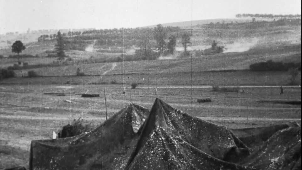 Thanks to Allied artillery, all that remains of German defences on this unidentified section of the Western Front are smouldering ashes and bails of barbed wire rolling like tumbleweed over the barren land. By 1915 trench warfare was well underway and this fragment of an unknown newsreel is a poignant testament to the ferocity of Allied guns, and a morale boost for audiences back home.