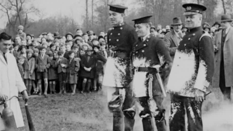 A wonderfully eccentric array of local Hertfordshire happenings shot by an amateur filmmaker. This scrapbook-style film captures all the fun of the fair with swing-boats and dodgems; an elaborate Tudor pageant in Watford; a procession of vibrant floats through the streets of Harrow; a crowd-pleasing display of fire extinguishing and scenes of the Pinner fox hunt.