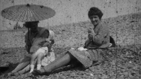 Aberaeron’s pharmacist, with ready access to film, takes a camera out with his family and records them in town, on the beach and by the river.