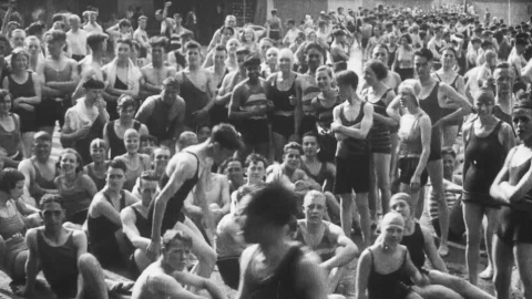 At the height of Britain's bathing craze, hundreds of sun-worshipping Londoners test the waters at Hyde Park lido.
