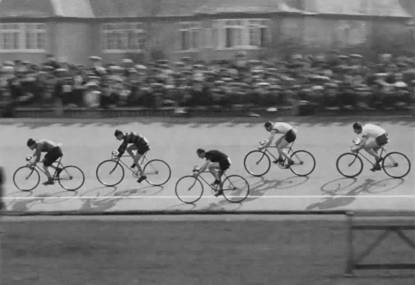 Herne Hill's state-of-the-art velodrome was built in 1891 to provide a safe, banked cycle track for south London. Such was cycling's popularity by the 1920s that the newsreels regularly brought their cameras to events like this one, bringing all their ingenuity and technical invention to the challenge of tracking the tirelessly spinning wheels.