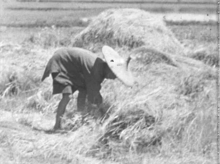 This beautiful amateur film records the daily rhythms of Hong Kong's harbour. Aside from the boys playing jacks and men dozing in baskets, everyone is busy working: bare-footed dockers loading and unloading, boys winching goods in unison and tiny tots fishing. At a rural location, farmers gather straw in a scene surprisingly reminiscent of Humphrey Jennings' English Harvest, shot the same year.