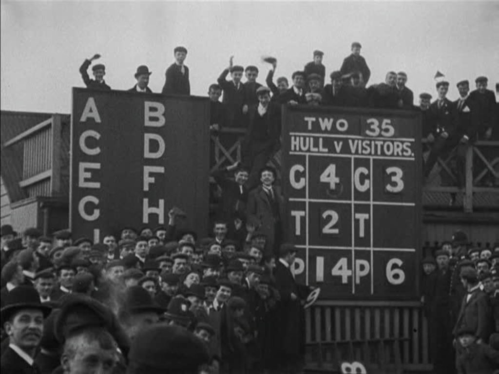 As with many sports matches shot specifically for showing to fans later, the emphasis here is on capturing as many spectators and individual players as possible. The final score was 14-6 to Hull FC. Defeat would become a familiar experience for the Rovers in the early years of the 20th century, and they would have to wait until 1920 to beat their old foes Hull in the final of the Yorkshire Cup.