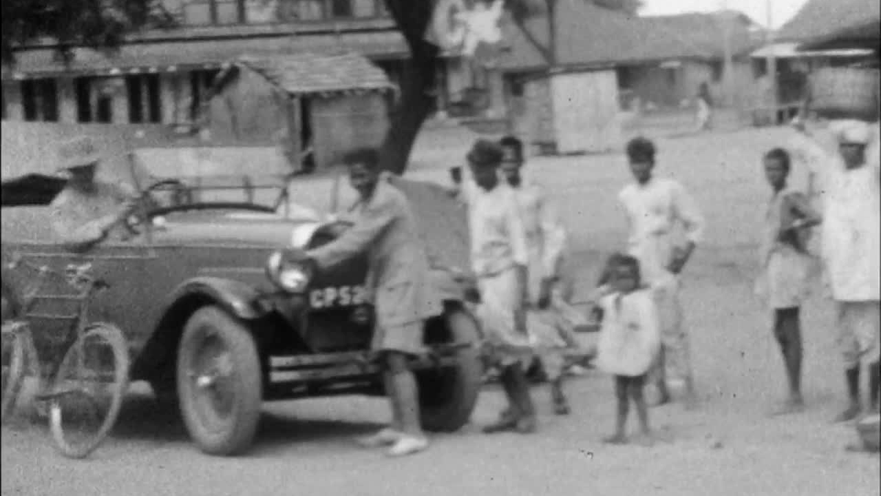 After a slightly disorientating shot of a European cathedral, we’re off along the Suez Canal and heading to India, via a rather half-hearted game of musical chairs. Frustratingly, we have no documentation about this film. However, its series of snapshots of rural and city life in India are fascinating. The highlight is a brief sequence featuring a political rally attended by Gandhi. By the time our amateur filmmaker arrived, however, a slightly taciturn-looking Gandhi was already sitting in the back of the car reading his newspaper and ready to leave. The film ends with a sequence of what appears to the Kolkata or Varanasi ghats. It is interesting to compare this footage with Panorama of Calcutta (1899), also available on BFI Player.