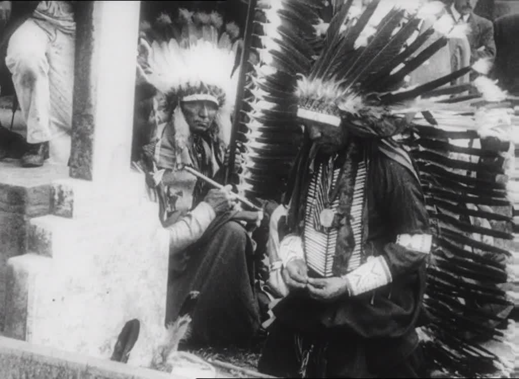 Long Wolf had died of pneumonia in London in 1892 while touring with William 'Buffalo Bill' Cody's circus. In 1997 his body was repatriated by the Oglala Sioux, along with an infant body from the same grave - the remains of a 17-month-old Native American girl named Star Ghost Dog, who died after falling off a horse during a circus performance. Like many Topical Budget items - even with war looming - the story's status as 'news' may be debatable, but its appeal to a newsreel hungry for striking images isn't hard to see.