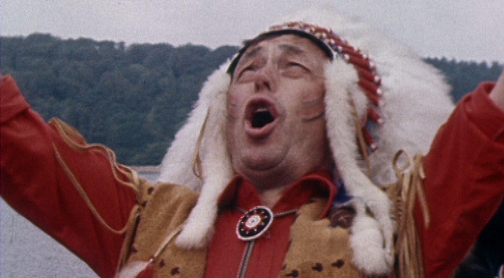 A businessman from Hampshire John Morley is the rainmaker here, a blood brother to a Native American of the Iroquois tribe. He is in full costume performing a traditional rain dance at Burrator Reservoir on Dartmoor in Devon with a contract to provide rain within ten days of signing the Treaty. Traditional dances of the Earth Songs are performed in Native American social gatherings and a rain dance is a simple ritual performed to evoke rain.