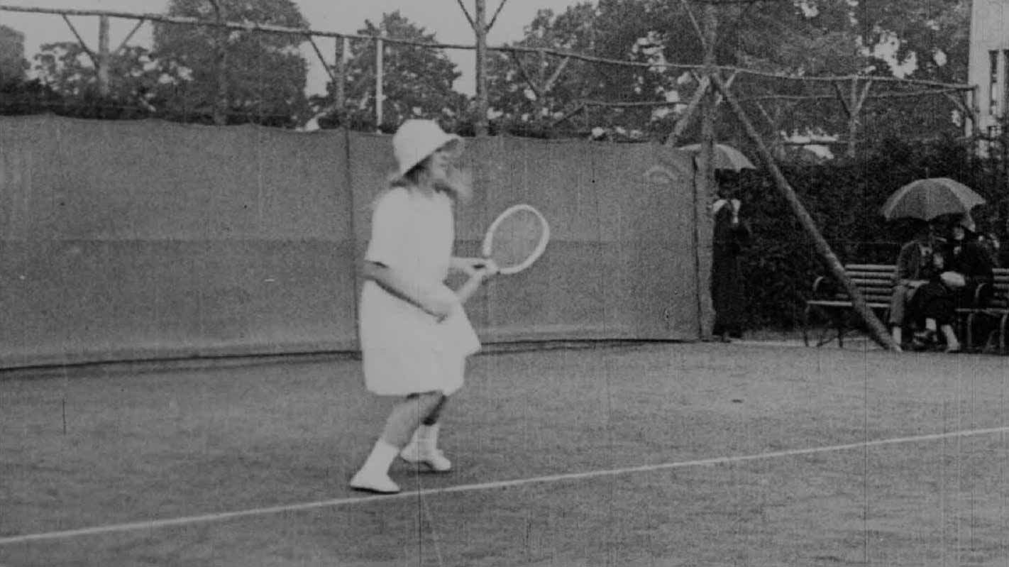 It's September 1924 and the Topical Budget newsreel cameras are outside the courts at Wimbledon during the Junior Championships of Great Britain. The title heralds "young players of promise" and though the first player is not identified, there is a glimpse of 14-year-old Betty Nuthall in action. Nuthall competed in the women's singles at Wimbledon in 1926 and became an international tennis star.