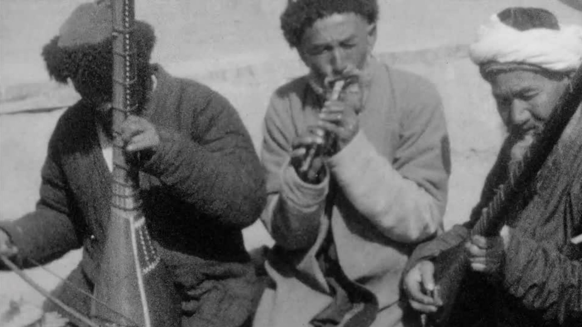 Amateur shot by intrepid plant hunter Major George Sherriff during his tenure as Vice Consul at Kashgar between 1927/8. This film shows a number of performances by a costumed theatre troupe on stilts. There is a segment on the practise of felt making – laying out the wool, applying hot water, rolling up and compressing. After a demonstration of partially mechanised spinning/weaving, the film ends with a number of British Officials at leisure with their dogs.