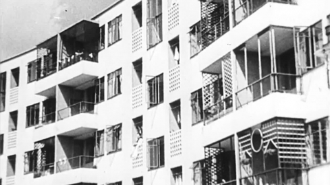 This emotive film was produced by the Kensington Housing Trust to campaign against the dire housing conditions in North Kensington - where vermin, damp and overcrowding made for unsanitary and uncomfortable living for working class people. Some stark images shame the cramped and unhygienic state of the Victorian terraces: a sick baby, a carpenter making a tiny coffin, a dead rat held by its tail.