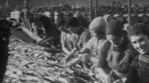 Thou shalt have a fishy: there are herrings aplenty as industrious Yarmouth fishermen get to work in this newsreel item