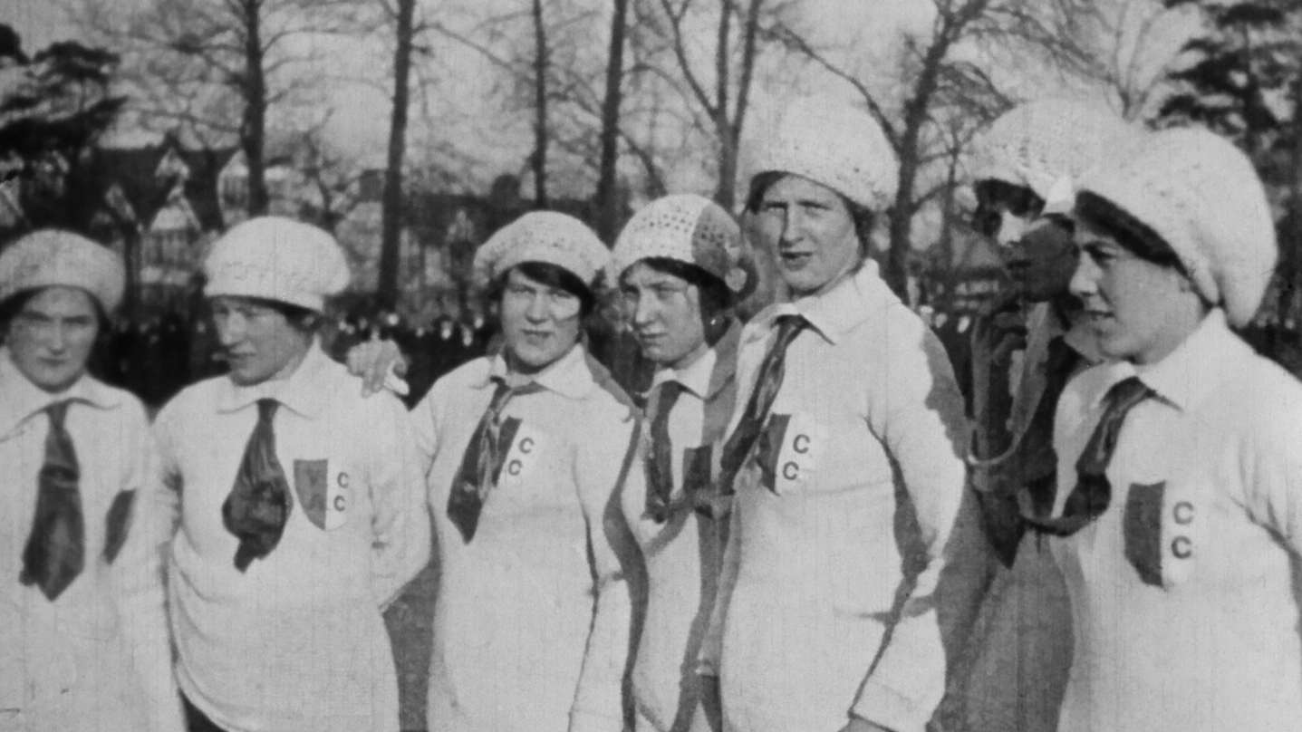 Women munitions workers from the Kynoch and Vickers Maxim factories take to the pitch in Southend during WWI.