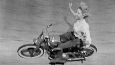 Anglia Television report on Cindy Willis, a seventeen year old who rides a motorbike around the Wall of Death at the fair by Southend Pier.
