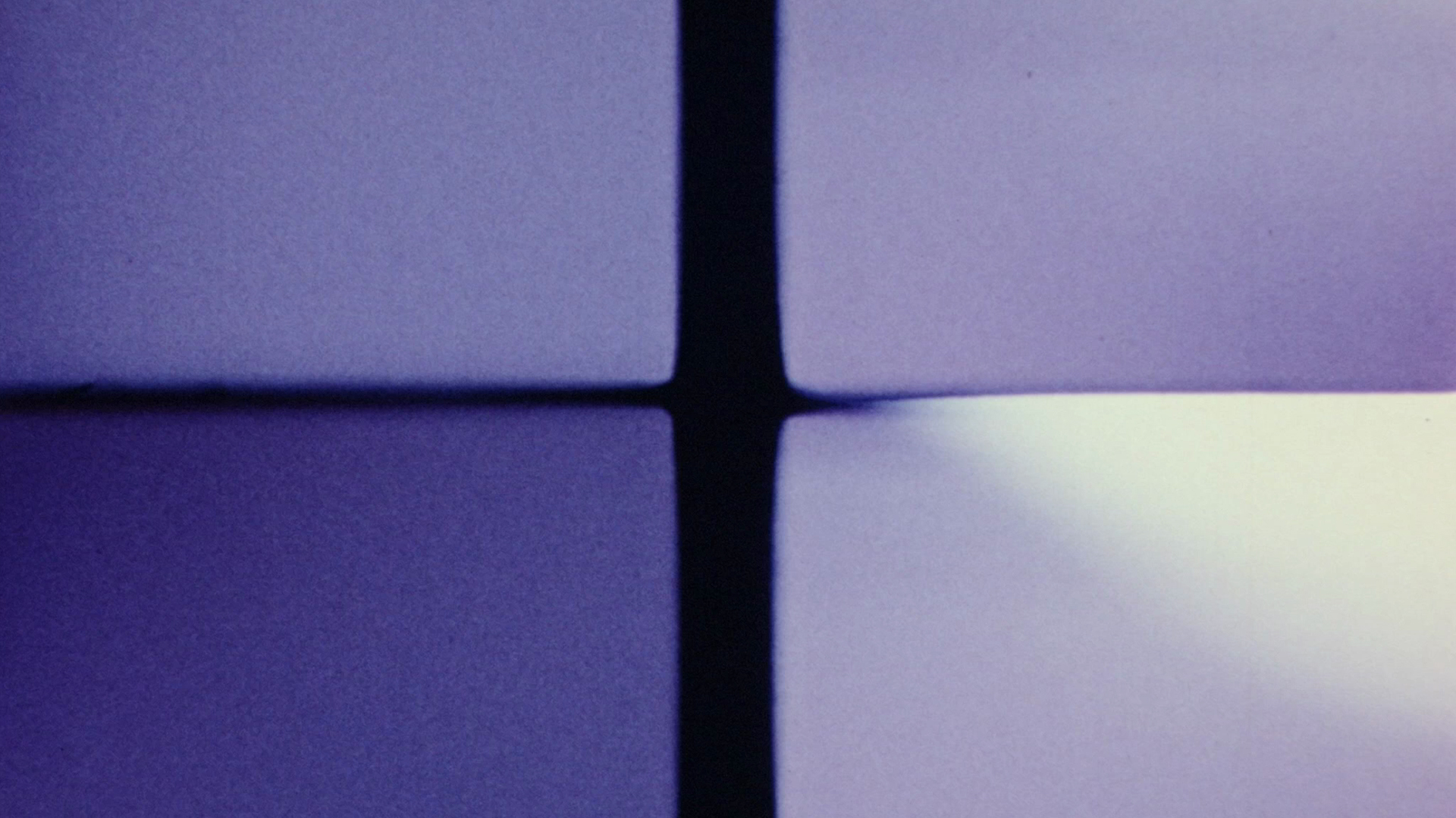 In Lenseless, John Du Cane concentrates his attention on light and its action upon the emulsion of the film when the lens is removed from the camera. The film stock is transported past the camera gate at different speeds (in forward and reverse motion). The subsequent ‘information’ is broken down into four separate images held within one frame, resulting in an interplay of complex light patterns.