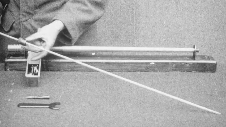 An instructional film showing the various cleaning products available for the Lewis Gun, lined up for the viewer in one continuous shot.
