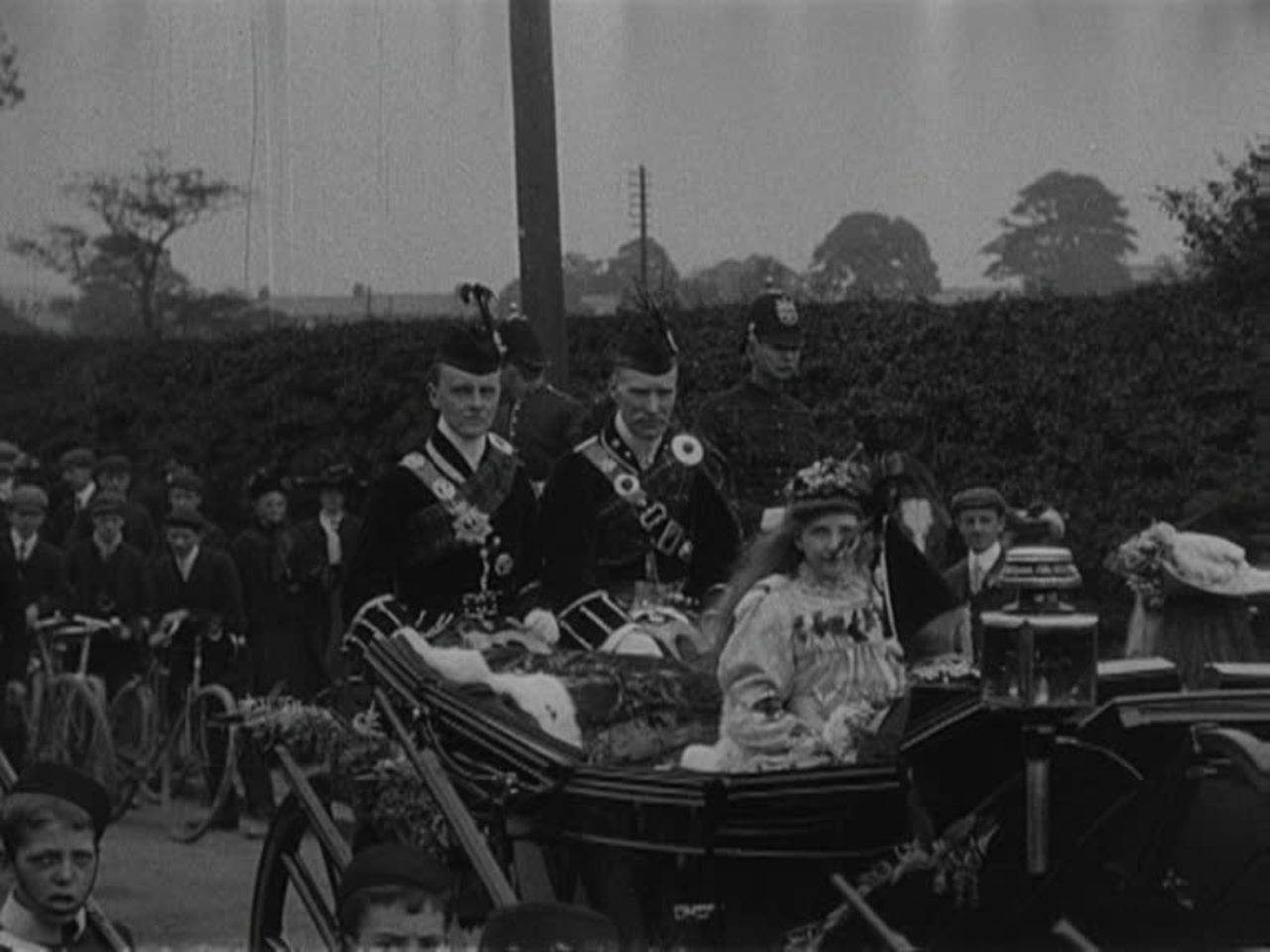 Led by the inevitable brass band, a parade files past the camera: Morris dancers, boys in sailor suits, boys dressed as Victorian beefeaters and the Boys' Brigade all troop past until the carriage bearing the May Queen pauses, slightly uncomfortably, for her close-up. The film was one of 35 within this collection commissioned by George Green, one of the pioneers of fairground cinema.