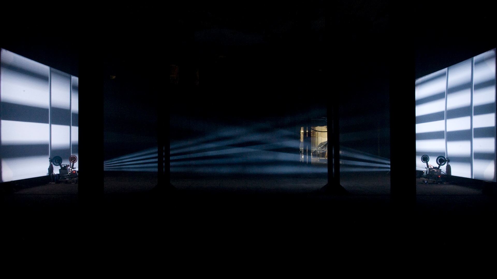 Light Music is a classic work of expanded cinema. Formed from two projections facing one another on opposite screens, Light Music is Rhodes’ response to what she perceived as the lack of attention paid to women composers in European music. She composed a ‘score’ comprised of drawings that form abstract patterns of black and white lines onscreen. The drawings are printed onto the optical edge of the filmstrip. As the bands of light and dark pass through the 16mm projector they are ‘read’ as audio, creating an intense soundtrack that proposes a direct relationship between the sonic and the visual. What you hear is equivalent to what you see.