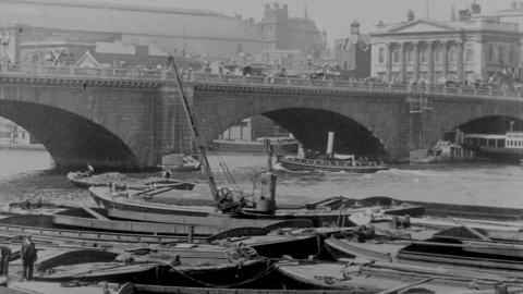 Rare early glimpses of the Edwardian Thames at its busiest.