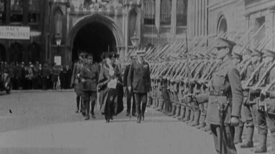 Britons, this man wants you! Horatio Herbert Kitchener was as important as a symbol as he was a political and military figure in his position as Secretary of State for War. With his steely eyes and mighty moustache he was the icon of the British recruitment drive, not just on that iconic poster, but also at events such as this inspection. The event was also filmed by the Topical Budget and Gaumont Graphic newsreels.