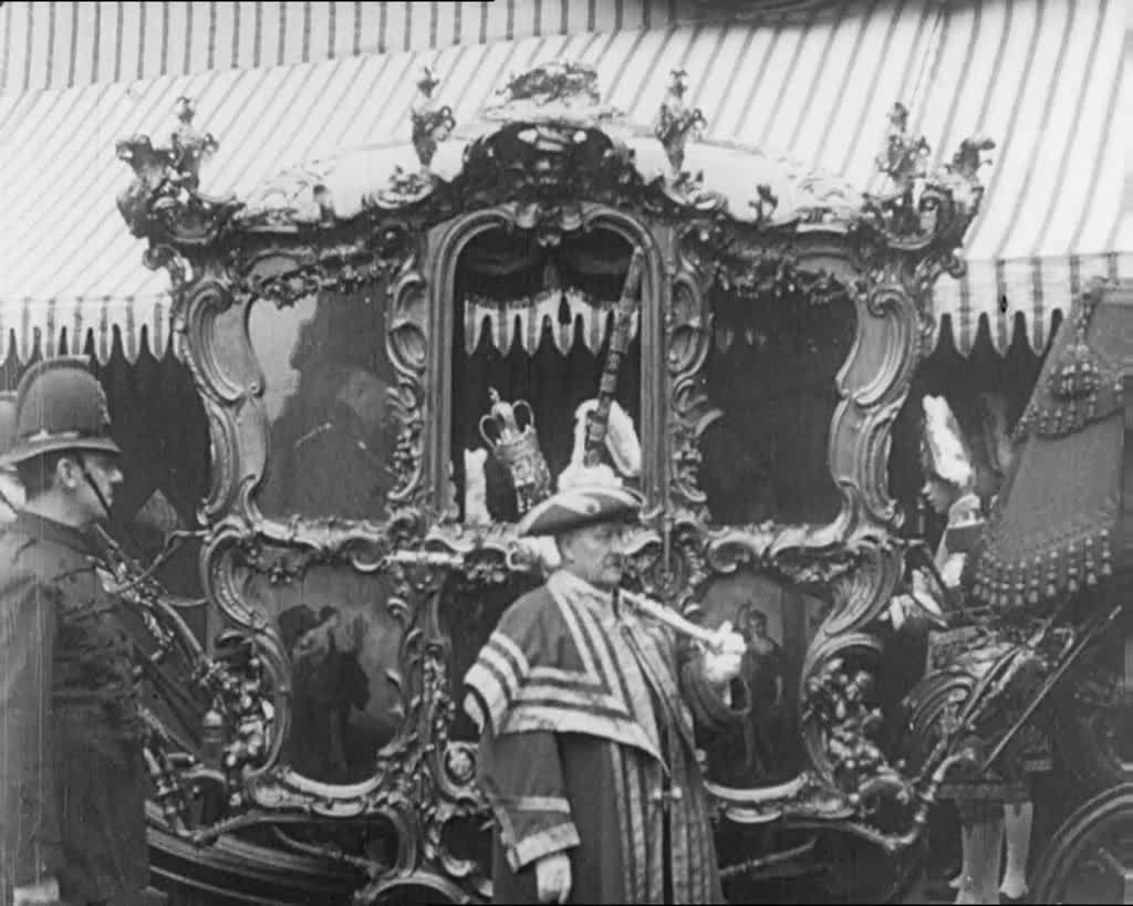 In November 1914, the newsreel cameras were out in force to catch all the pomp of Lord Mayor's Show - the centuries-old tradition in which the newly-elected Lord Mayor of London pledges loyalty to the Crown. Vast crowds came out to glimpse Sir Charles Johnston - seen here descending from the majestic state coach - and to support the parading military personnel, shortly off to war in Europe.