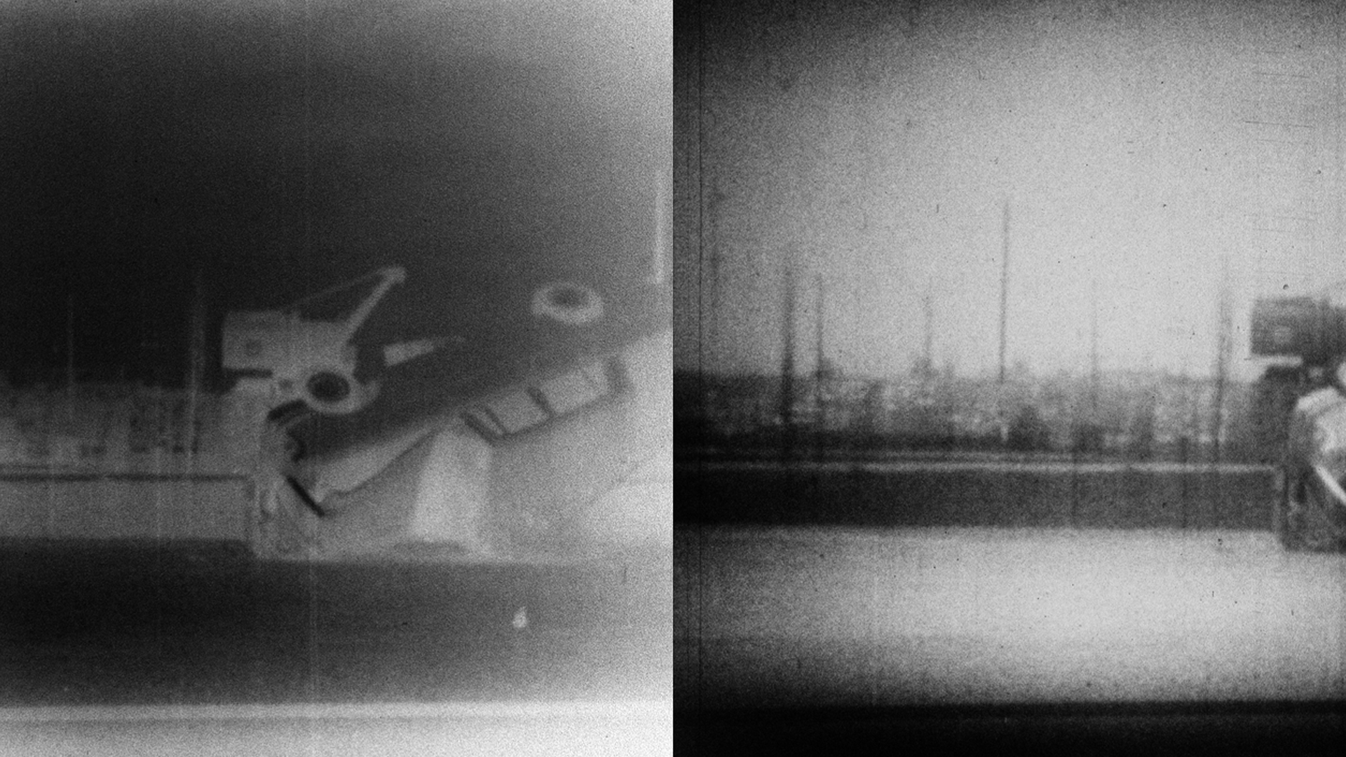 The original material that forms the basis for Mechanical Ballet is an anonymous short reel of film of what appears to be car crash tests, carried out in a deadpan and somewhat cumbersome manner. Reworked into a two-screen film and divorced from their original context, they take on both a sinister and humorous quality. Mechanical Ballet was born out of an interest in ‘found footage’ film (in its relation to collage and assemblage) and the possibilities offered by the London Film-Makers’ Co-op workshop in terms of manipulation of the filmstrip and the film frame, projection, duration and the film printing process.