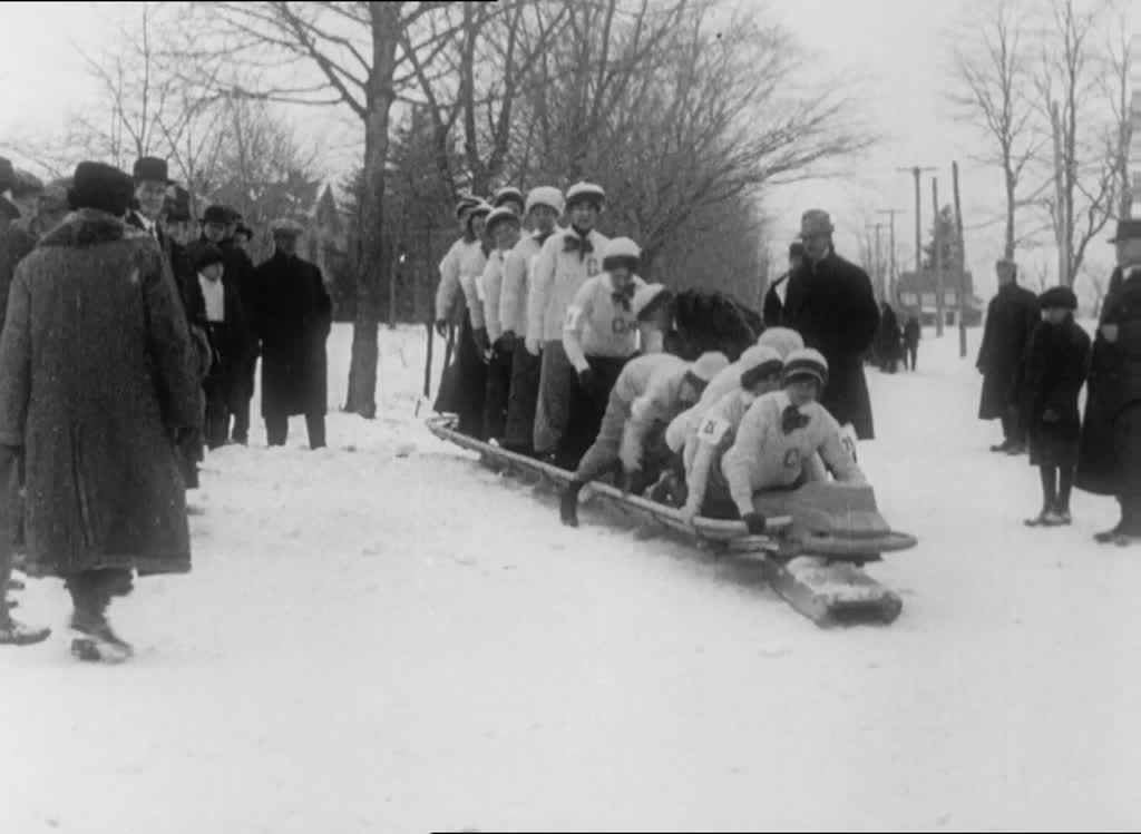 Bobsleighing came from Switzerland in the late 19th century - a cunning ruse to encourage wealthy English tourists to holiday during the winter season. In 1914 the sport was still in its infancy, the preserve of rich socialites who gathered at snowy resorts. Huntingdon, the Long Island village where this film was shot, held winter carnivals regularly between 1907 and 1920.