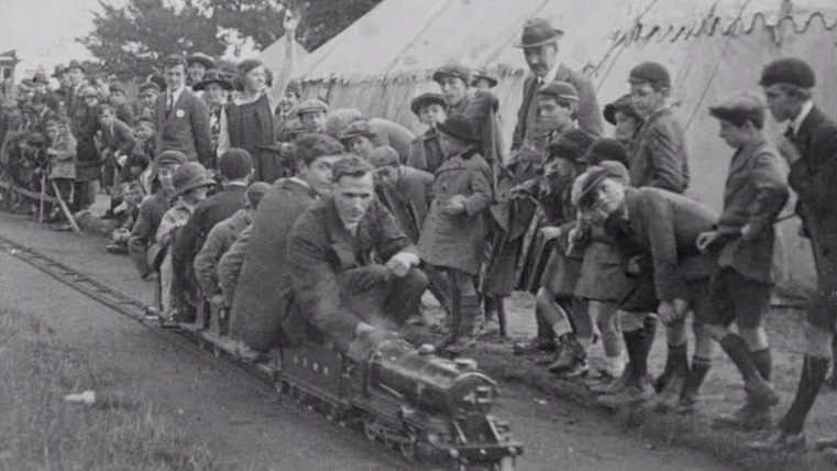 All aboard for charity! The ride-on miniature railway is a popular addition to any fete or fair. This mini-steam marvel was built and ran by hobbyist F. Russell Hutchinson who donated the proceeds to the Southern Railway Servants' Orphanage for over 30 years. The train was a summer fixture on the seafront at Hove in the 1930s, with considerable benefit for the Woking based children's home. This film was taken for an unknown newsreel and kept by Mr Hutchinson himself.