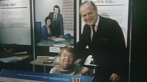 “Disabled workers are good workers”. Sir Douglas Bader visits a Chelmsford Job Centre to launch his new “Fit for Work” scheme for the disabled.