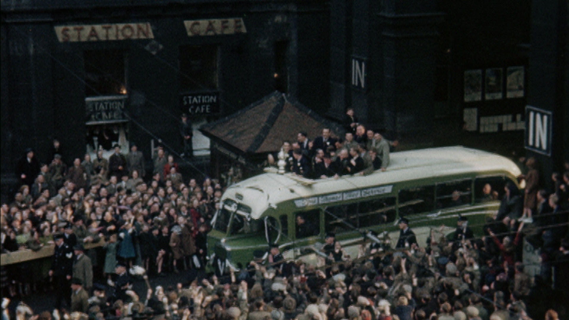 This amateur footage was shot by Jack Lawson from the balcony of the County Hotel on Neville Street, and is focused on the swarming crowds. The Lawsons owned a confectionary business on Northumberland Street but he was also a director of Newcastle United during a golden era for the club. The 1951 FA Cup Final was contested by Newcastle United and Blackpool at Wembley on 28 April 1951. Newcastle won 2–0, with both goals scored by Jackie Milburn. By the time he left Newcastle in 1957, this former Ashington Colliery fitter had become the highest scorer in Newcastle United’s history, a record held until 2006.